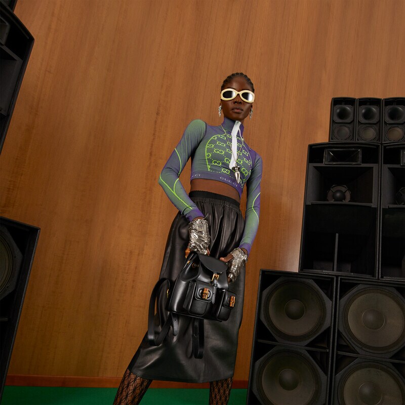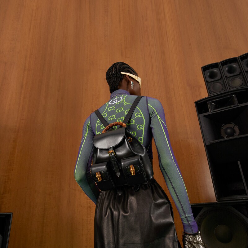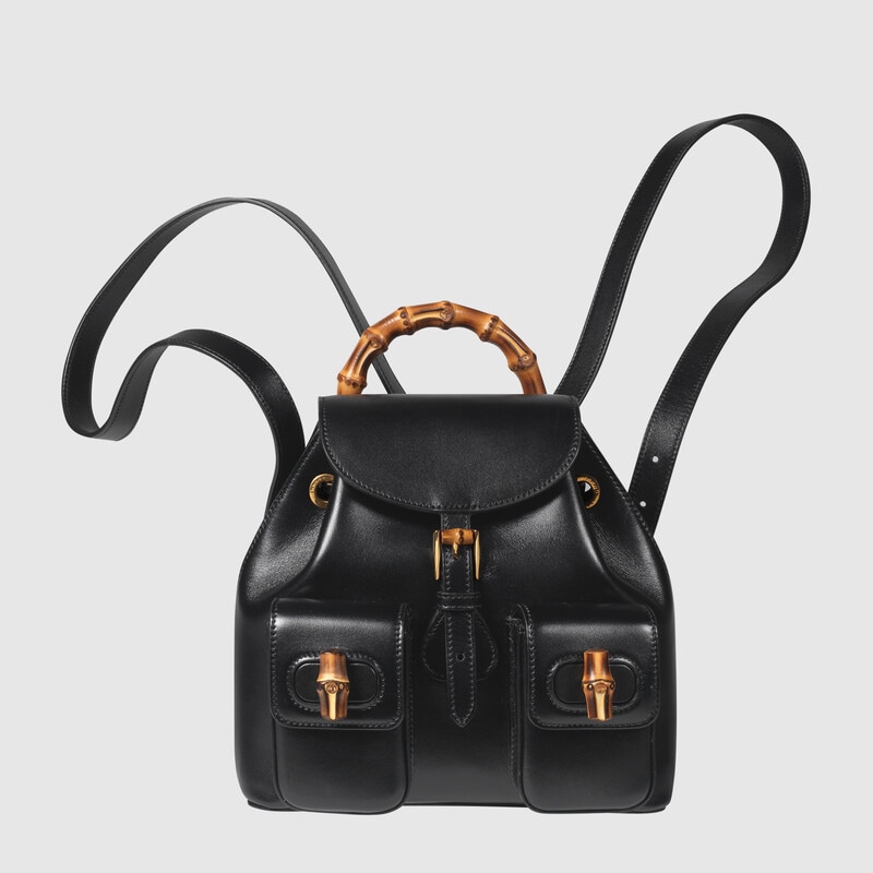Paying homage to a material at the heart of Gucci’s heritage, this backpack is defined by its bamboo details. Crafted from smooth black leather, the accessory is inspired by styles introduced in the House’s collections of the 90s.