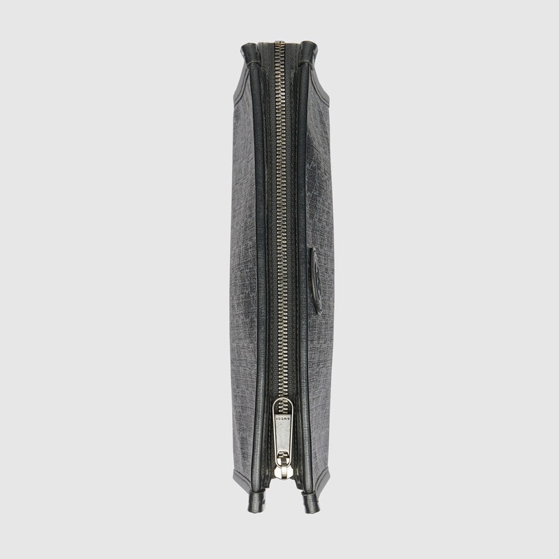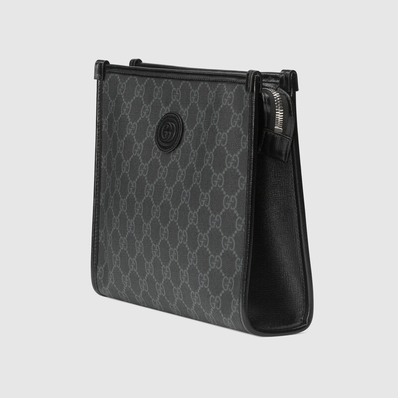 Archival fabrics and details combine to give a selection of accessories a vintage appeal throughout the Gucci Aria universe. Here, this beauty case is presented in GG Supreme canvas and enriched by a tonal leather trim and Interlocking G tag.