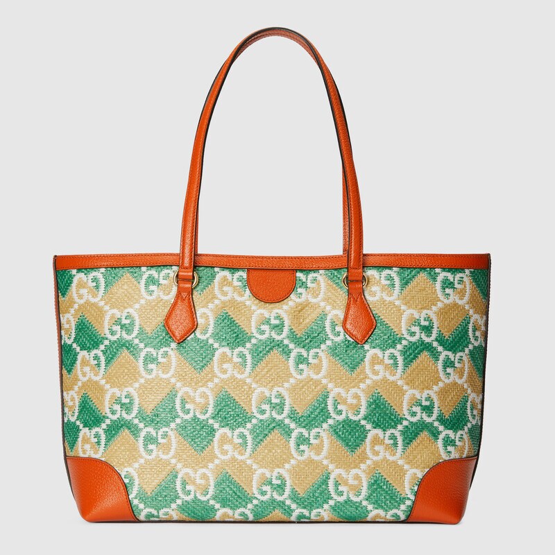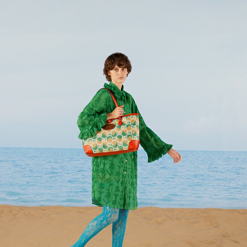 - Cream and green GG straw effect fabric