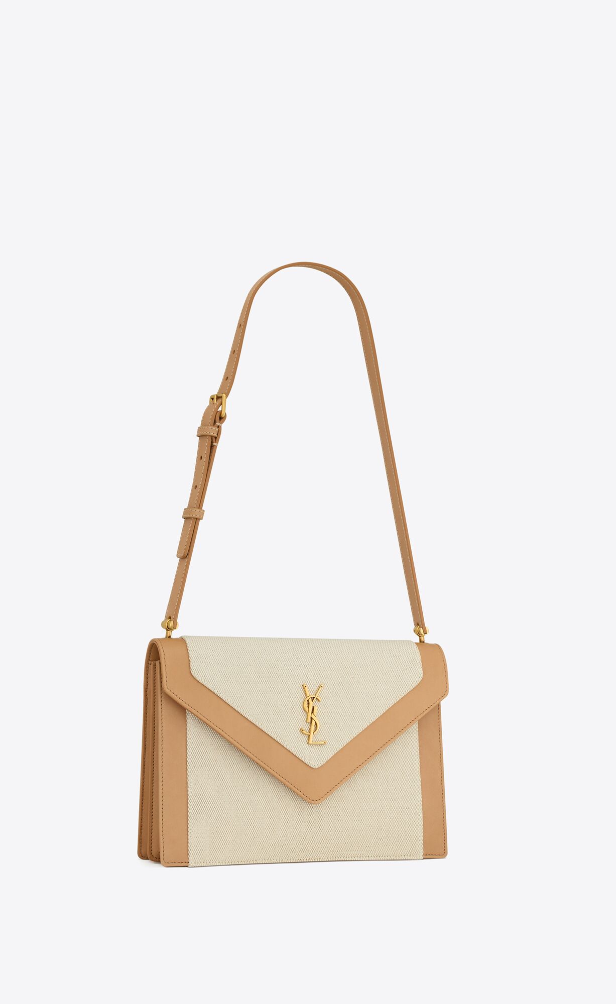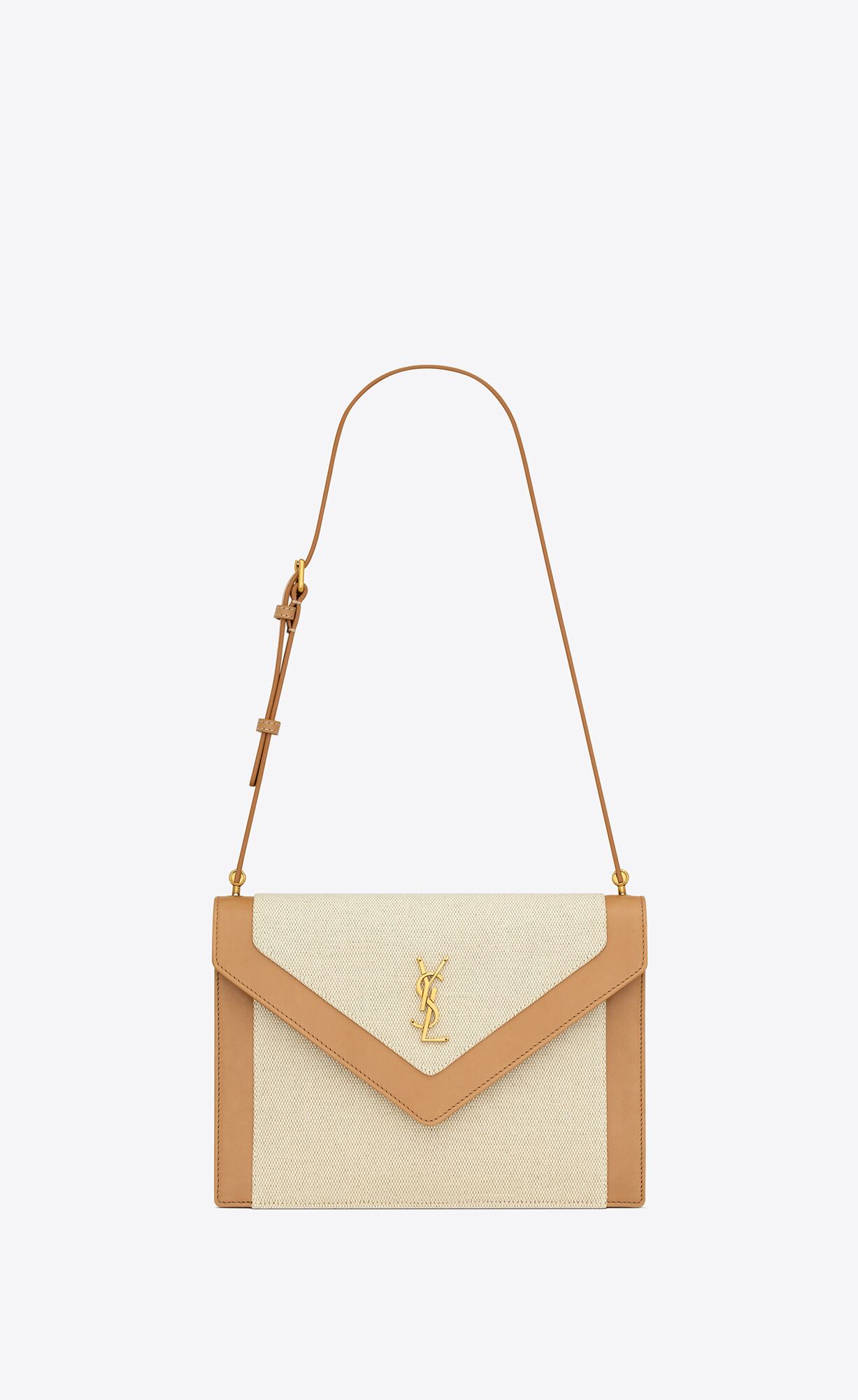 Gaby satchel featuring a front flap with magnetic snap closure, decorated with the cassandre.