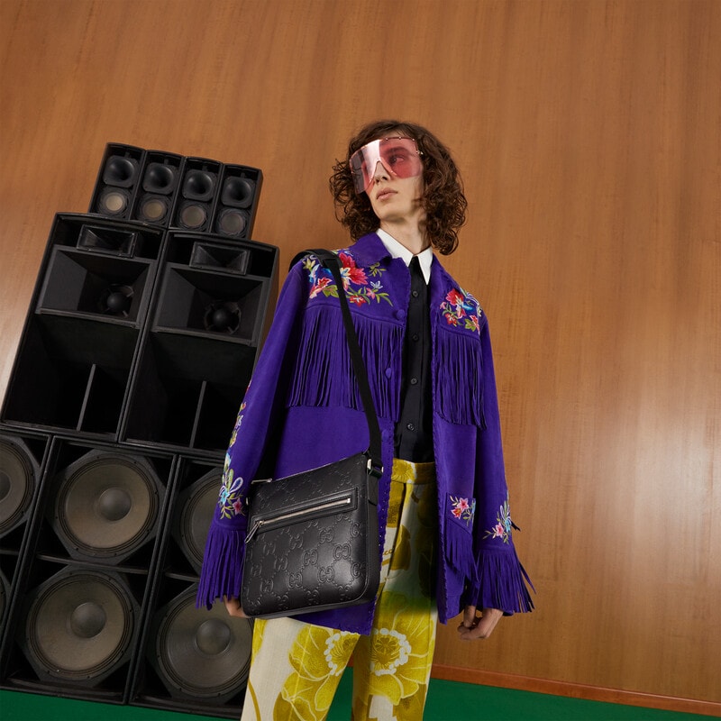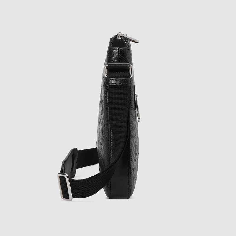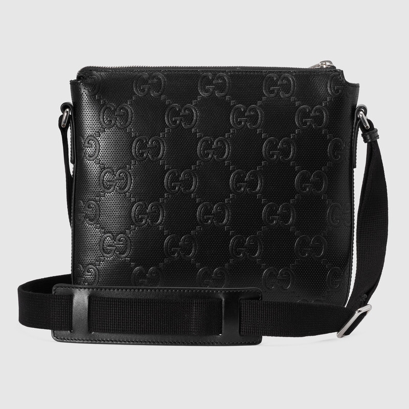 Playing on texture, GG leather combines softness with an allover embossed House emblem. A slightly shiny finish completes the material with a contemporary feel. Here it appears as the defining element of this small messenger bag.