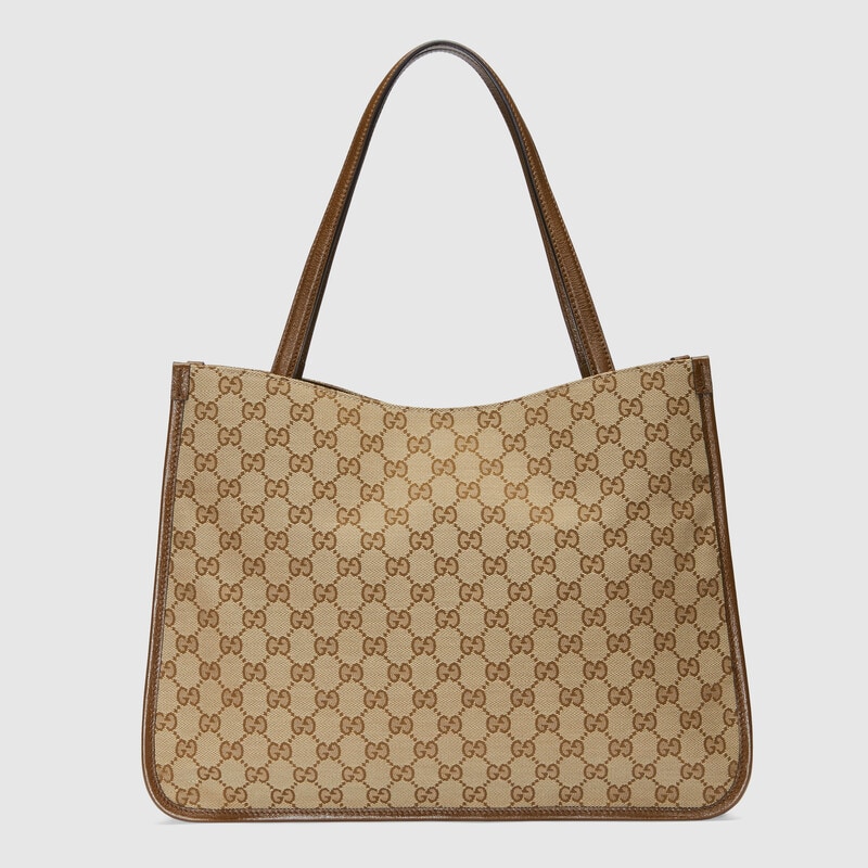Designed with rounded edges and a soft shape, the tote bag is introduced to the Gucci Horsebit 1955 collection for Spring Summer 2020. Made from GG Supreme canvas with brown leather trim, the double-handled silhouette is finished with an organizational interior and magnetic snap closure. The collection unifies details first introduced on the original bag that inspired the line from over six decades ago with a modern spirit, highlighting the Horsebit. Part of Gucci’s genetic code, the double ring and bar design has been established as one of the most distinctive elements among the House symbols borrowed from the equestrian world.