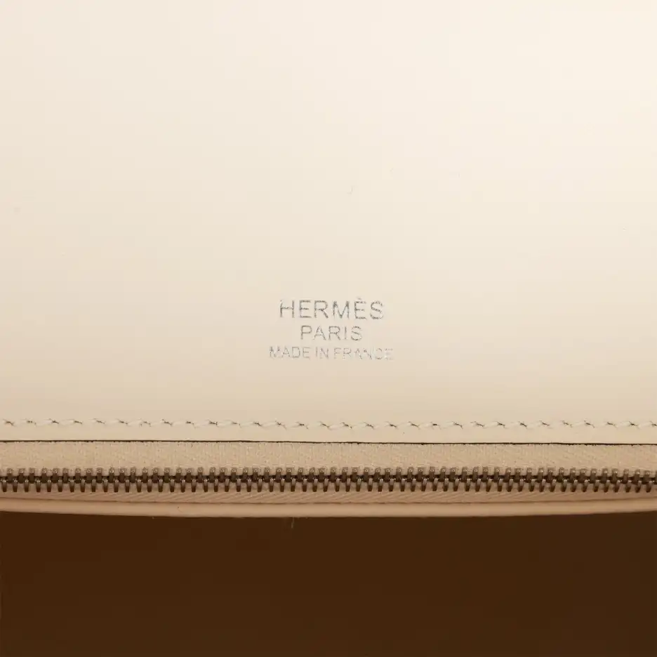 The interior is lined with Nata swift and has one zip pocket with an Hermes engraved zipper pull and an open pocket on the opposite side.