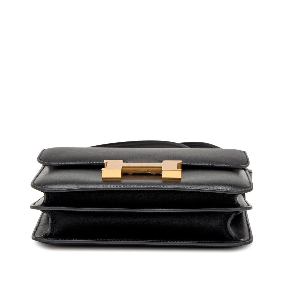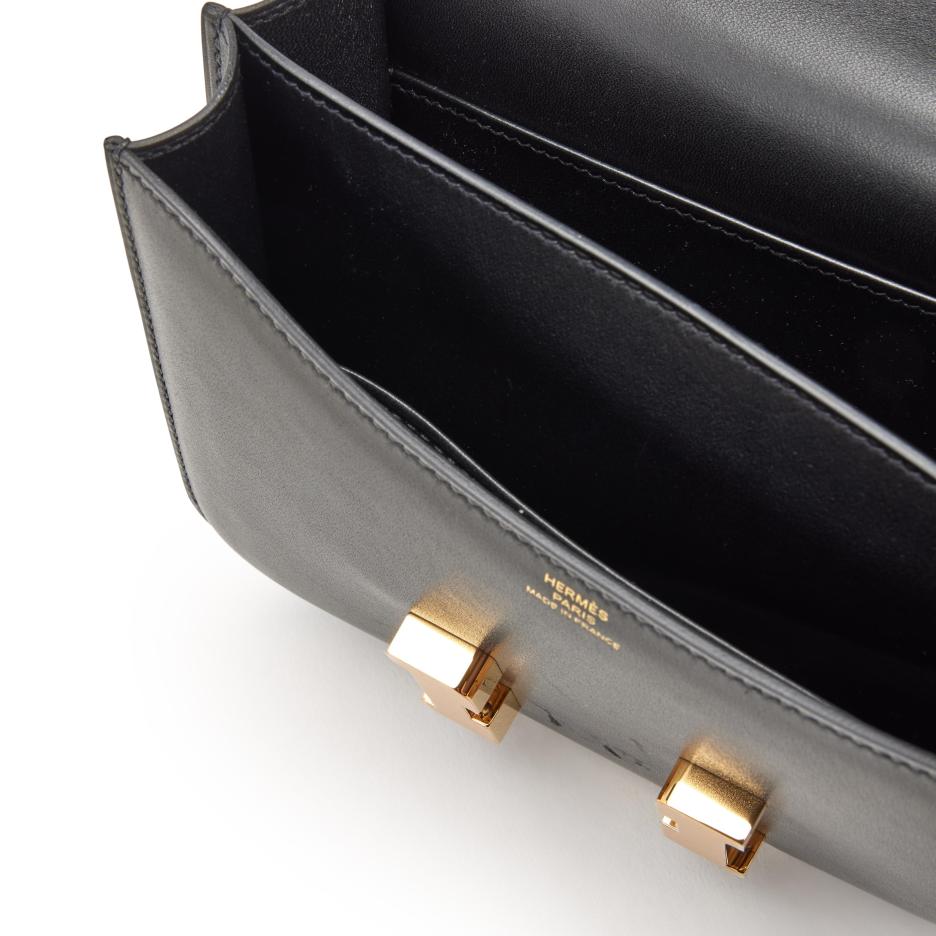 Guaranteed authentic Hermes Constance Mini 18 bag features classic Black with coveted gold hardware.