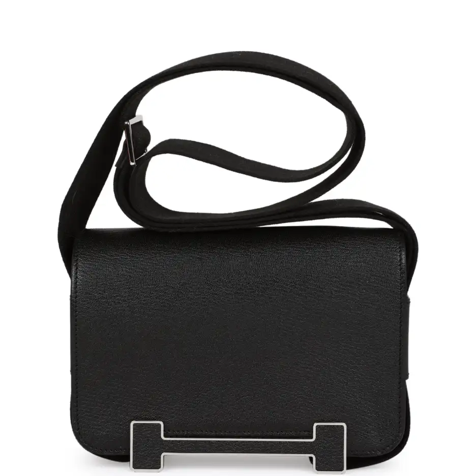 Hermès Geta Black Chevre Palladium Hardware