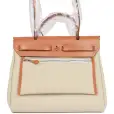 This Herbag Zip PM is of Beton Toile H and Vache Naturel Berline Hunter leather with palladium hardware and has tonal stitching, front flap, two straps with center clou de selle closure, clochette with lock and two keys, back zip pocket, single rolled handle and shoulder strap.