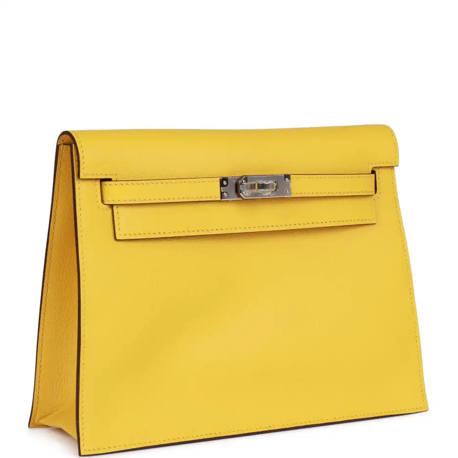 This Kelly Danse II is in Lime evercolor leather with palladium hardware and has contrast stitching, two straps with front flap closure and an adjustable flat shoulder strap for multistyle wear.