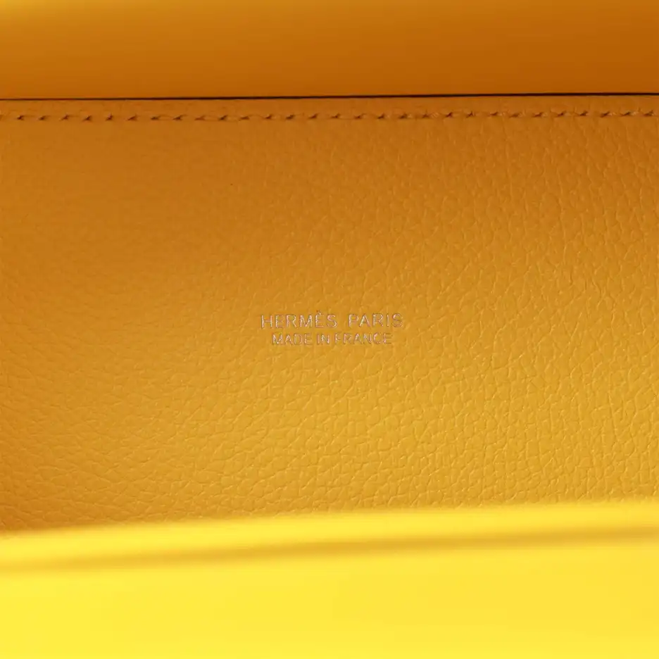 The interior is lined with Lime lambskin and has a removable Hermes stamped base and an open wall pocket.