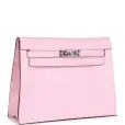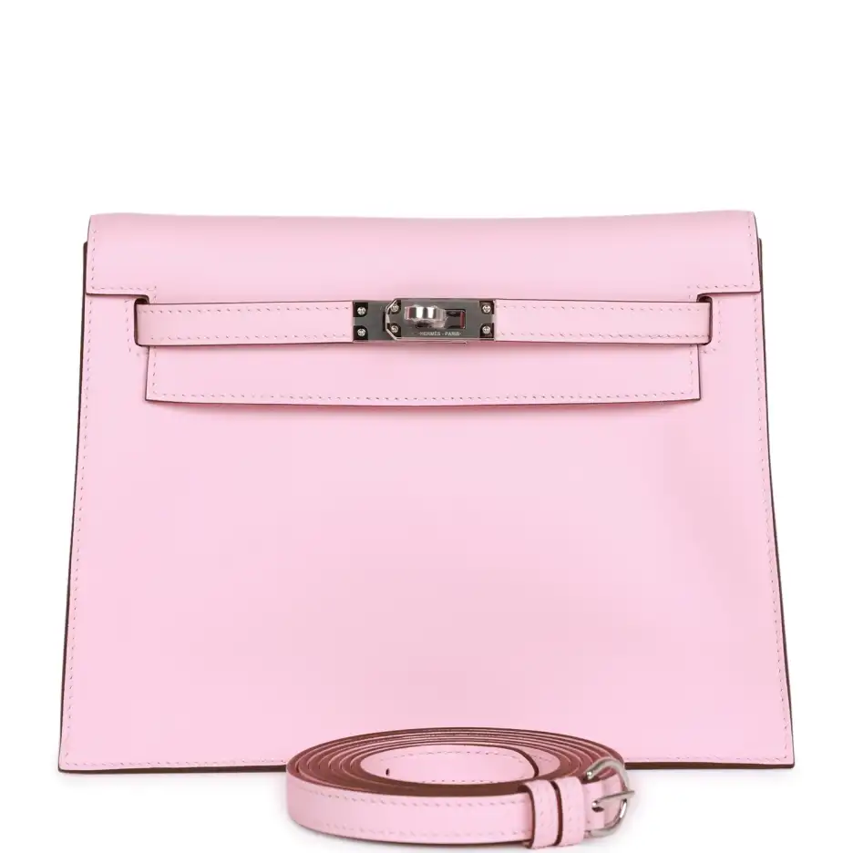 This Kelly Danse II is in Rose Sakura swift leather with palladium hardware and has tonal stitching, two straps with front flap closure and an adjustable flat shoulder strap for multistyle wear.