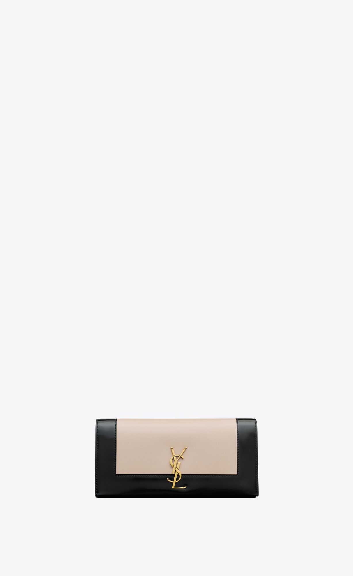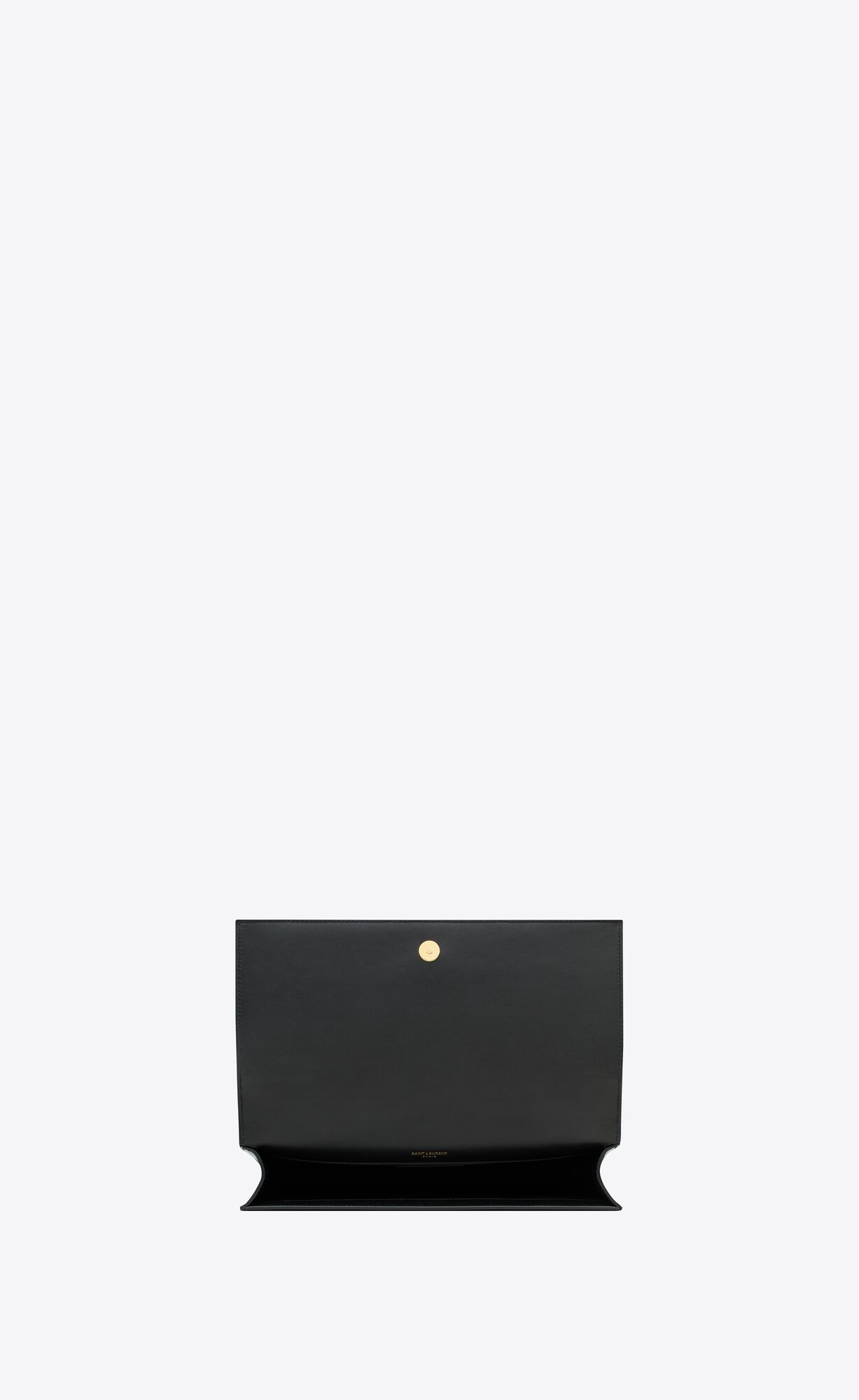 clutch bag decorated with the Cassandre, featuring a magnetic flap closure.
