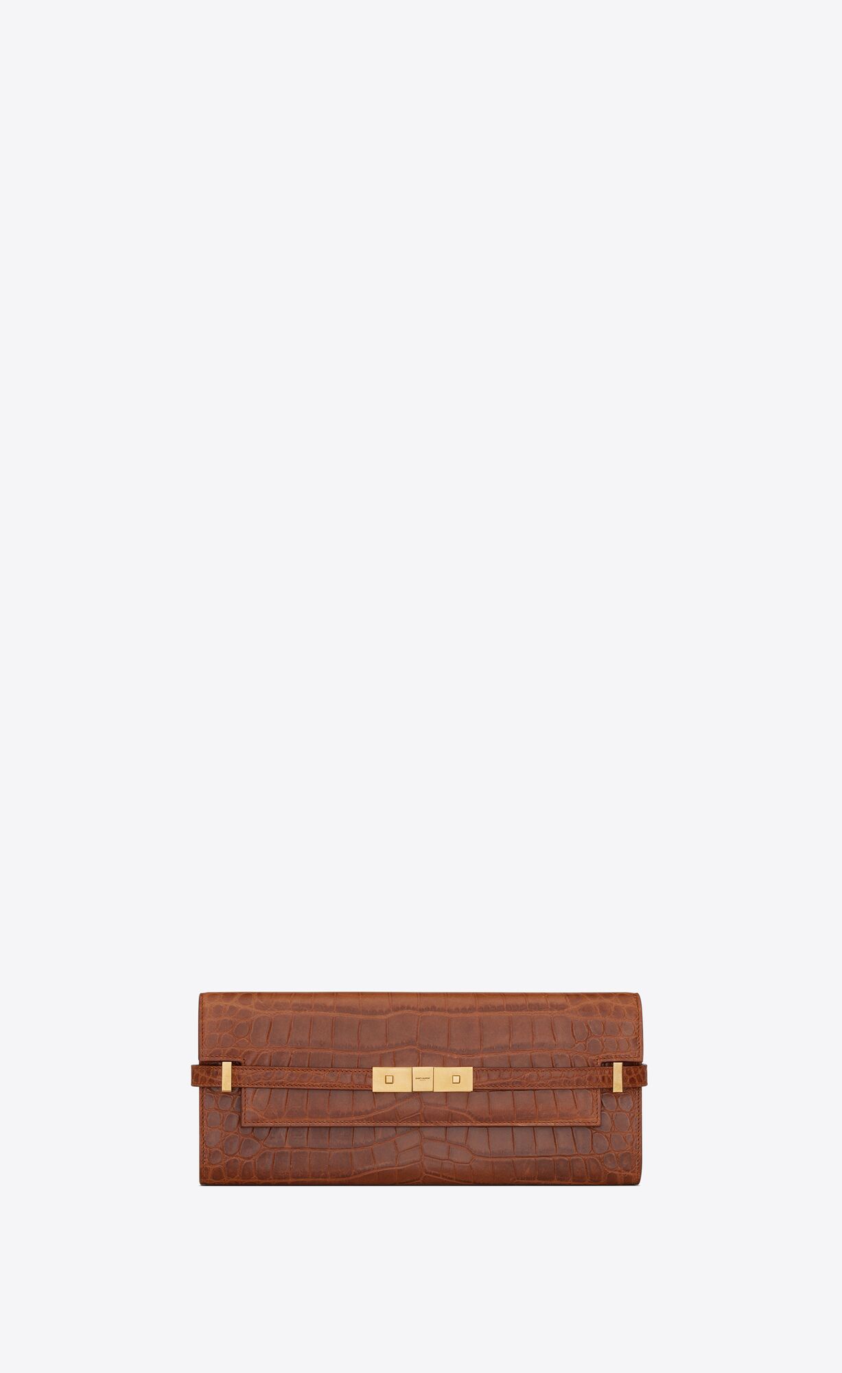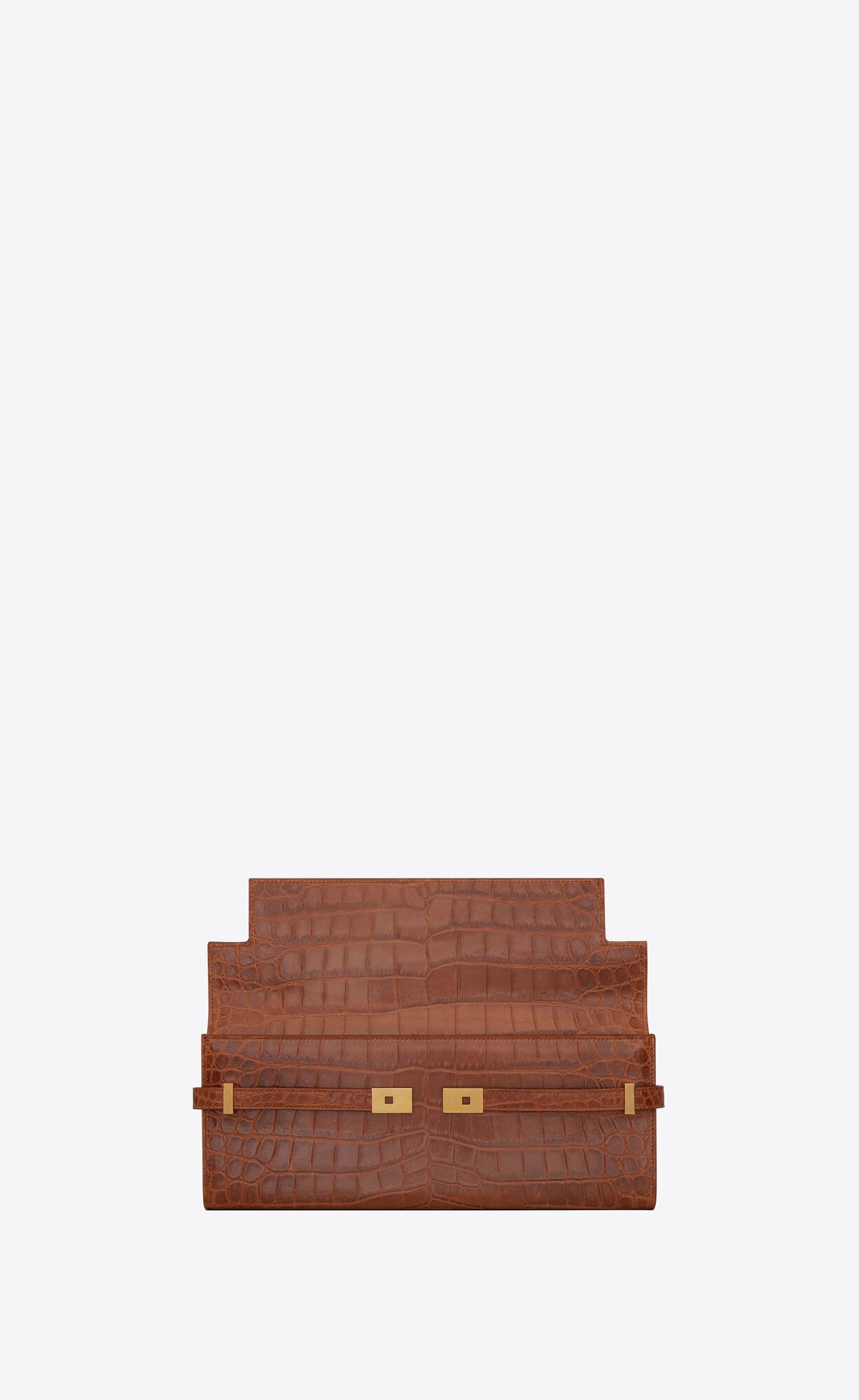 manhattan clutch in crocodile-embossed leather DARK CARAMEL