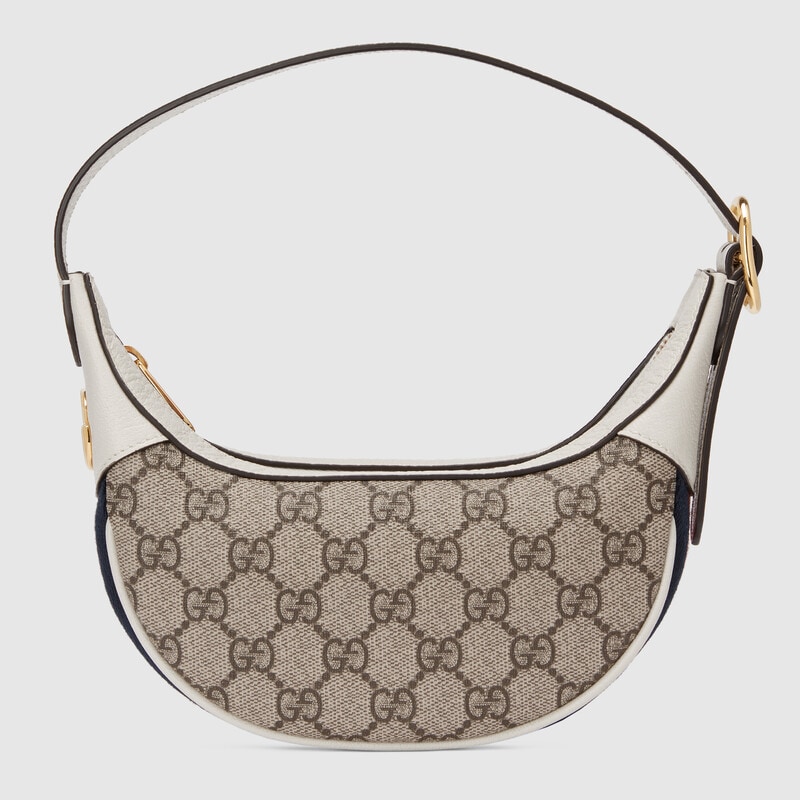 The world of Ophidia is enriched with the introduction of a crescent shaped mini bag. Crafted from the House’s monogram canvas, the half-moon silhouette is infused with a retro spirit, recalling ’90s designs.