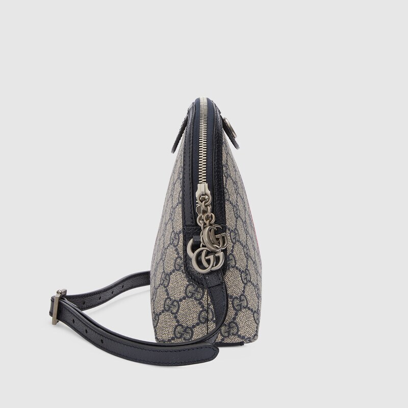 Mirroring the material’s historic origins, GG Supreme is introduced in a timeless mix of blue and beige for Gucci Love Parade. The canvas has come to the front of each collection decade after decade to become a hallmark of the House. Here, the classic palette defines this small Ophidia shoulder bag.