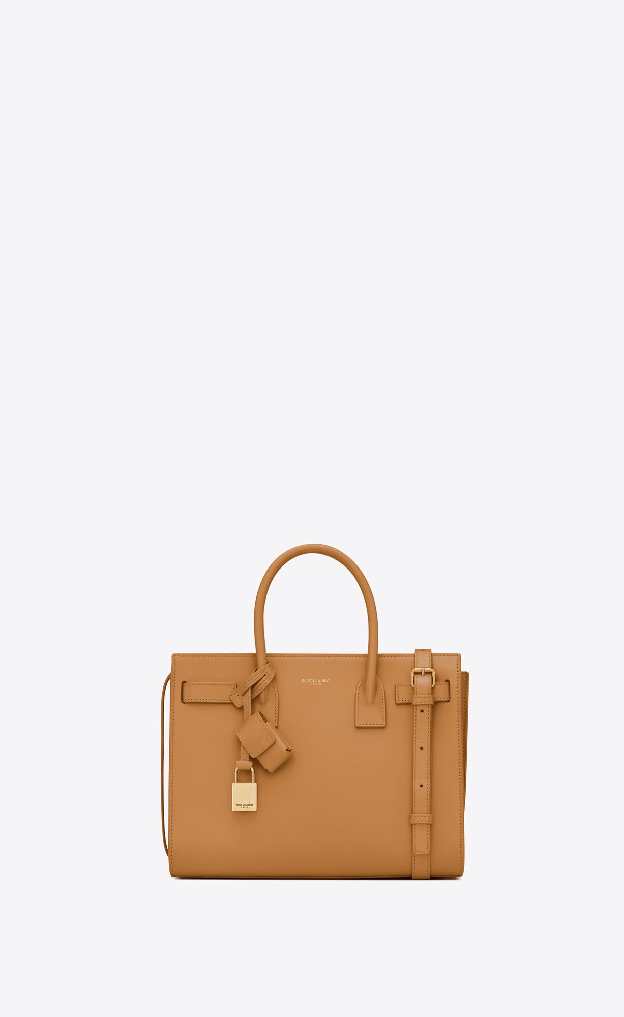 Roomy and leather-lined, it is distinguishable by its accordion sides, snap tabs and brass padlock.
