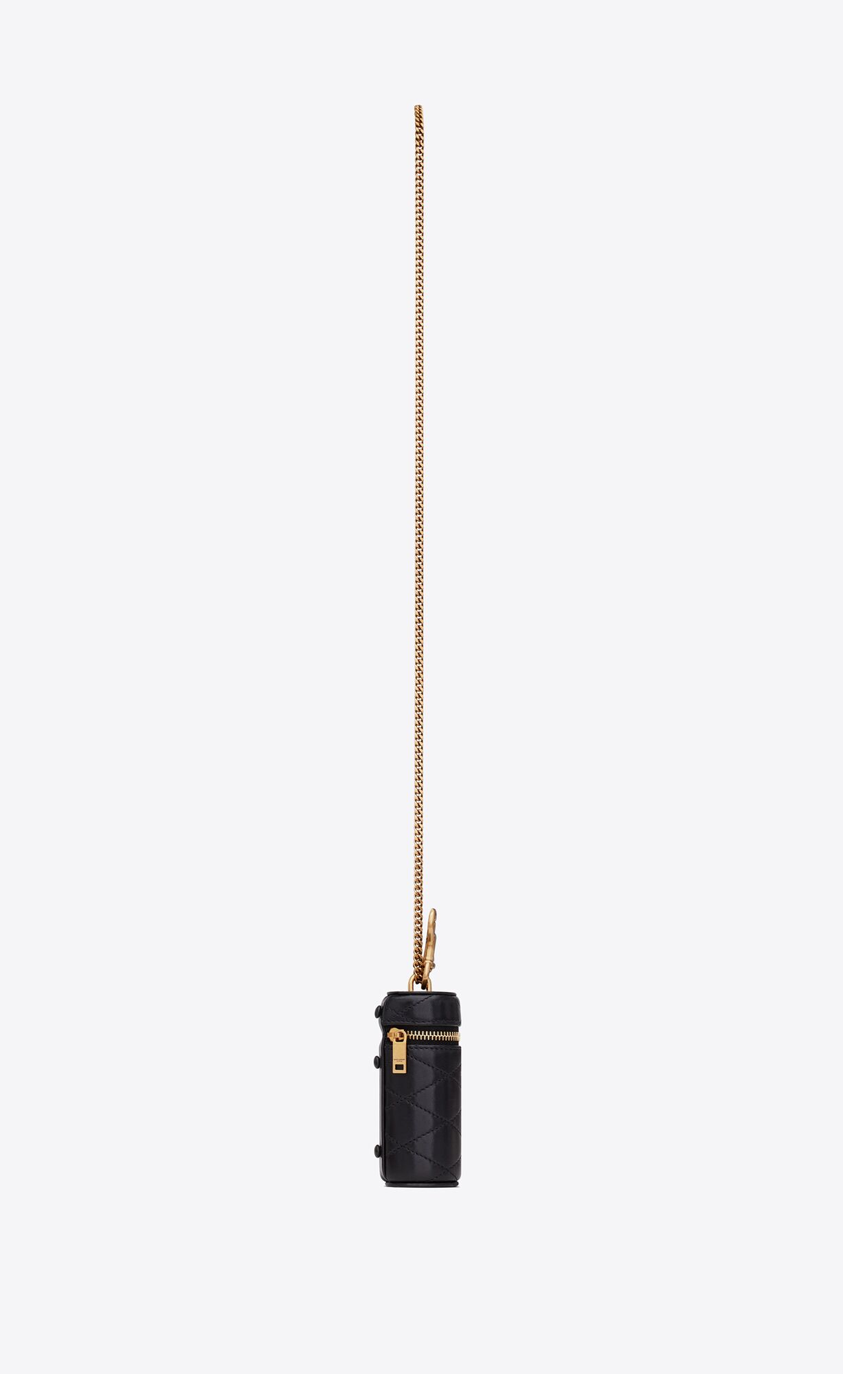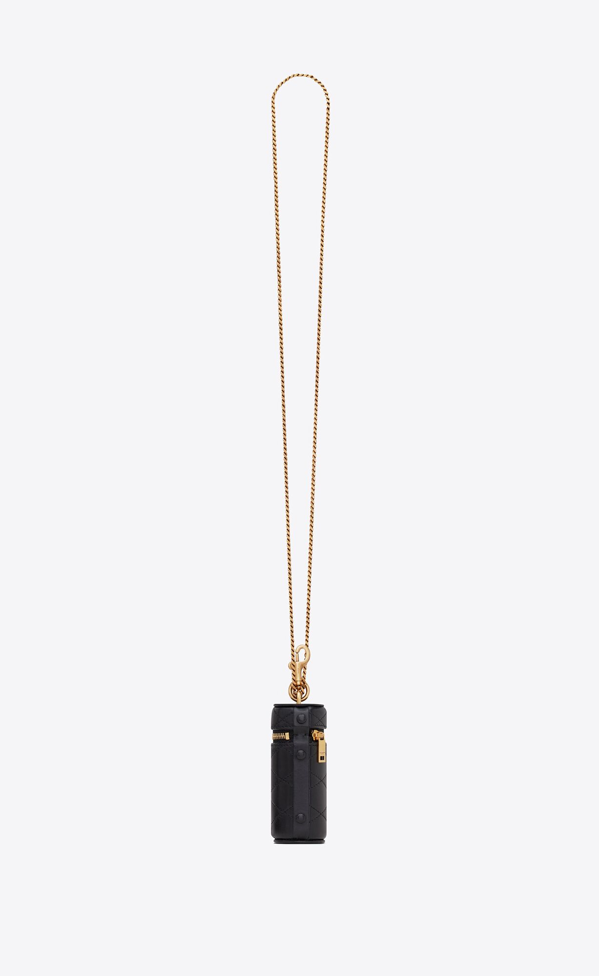 ZIPPED LIPSTICK CASE DECORATED WITH A SAINT LAURENT PARIS SIGNATURE AND DIAMOND QUILTED OVERSTITCHING.