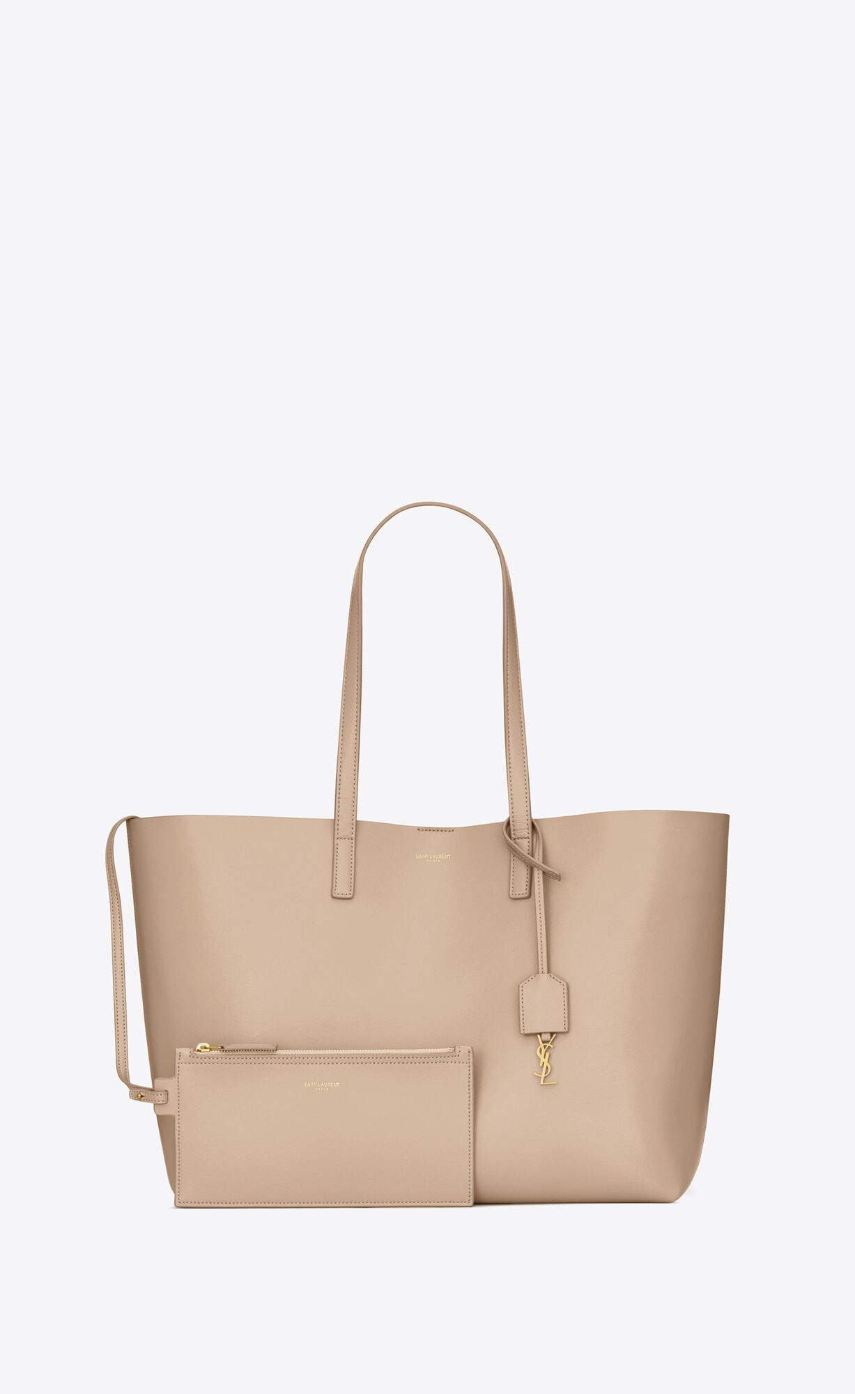 LARGE, LIGHT, SUPPLE EAST/WEST TOTE BAG, FEATURING CASSANDRE CHARM AND DETACHABLE INTERIOR ZIPPED PURSE.