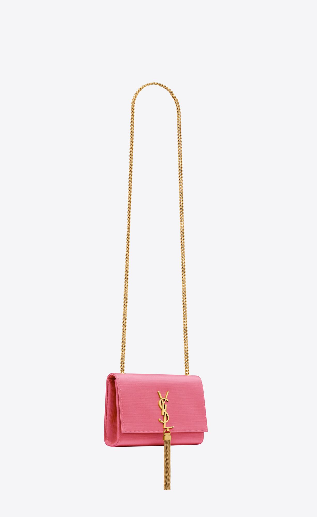 The iconic Kate bag in satin, featuring the CASSANDRE AND CHAIN TASSEL.