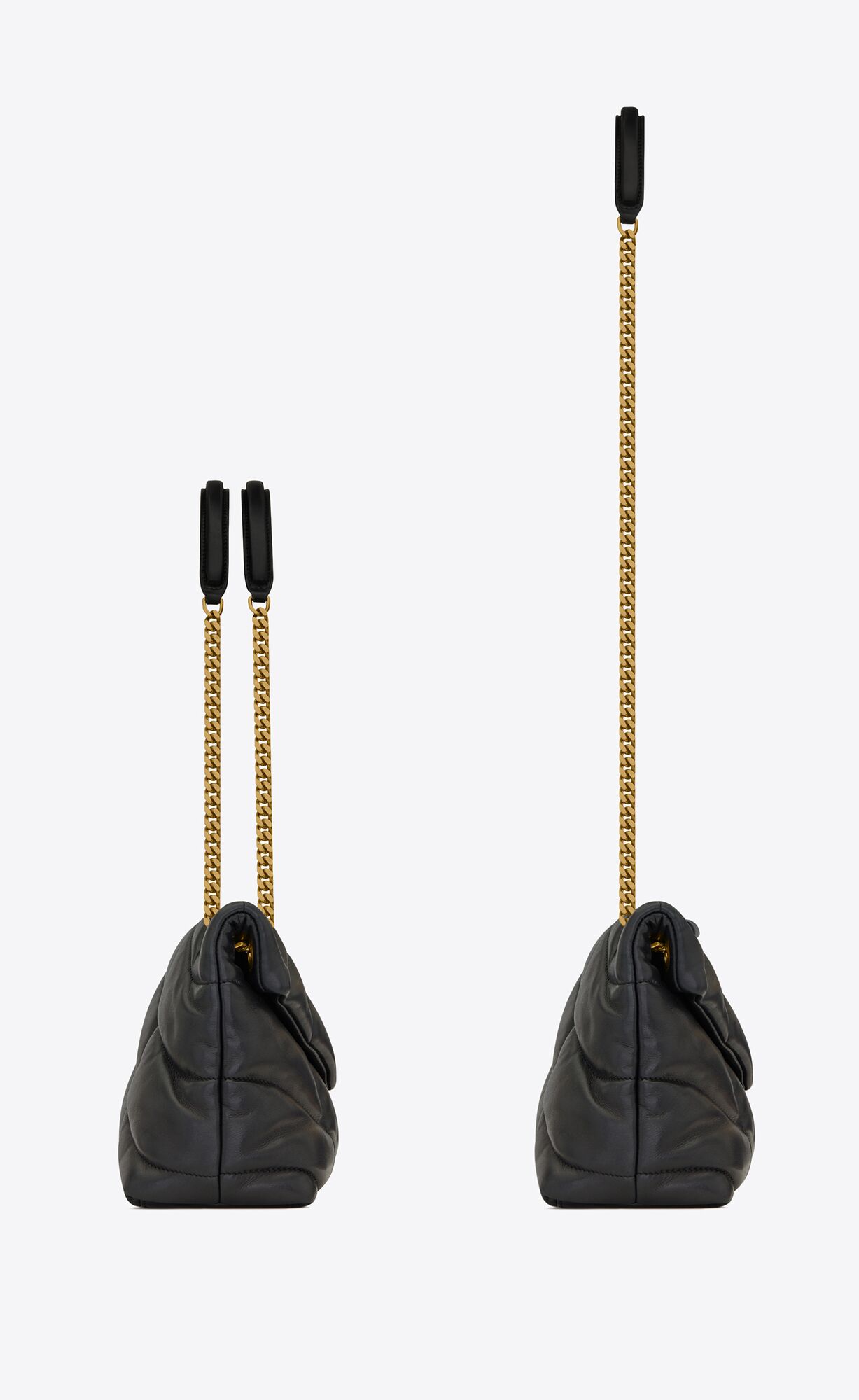 FEATURING A SLIDING CHAIN STRAP THAT CAN BE WORN ON THE SHOULDER OR CROSSBODY.