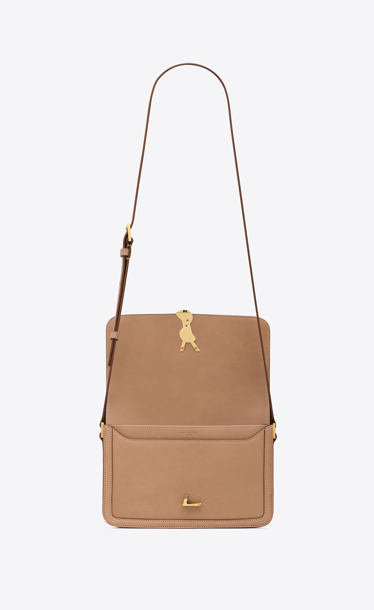 MESSENGER BAG WITH FRONT FLAP DECORATED WITH CASSANDRE, FEATURING AN ADJUSTABLE SHOULDER STRAP.