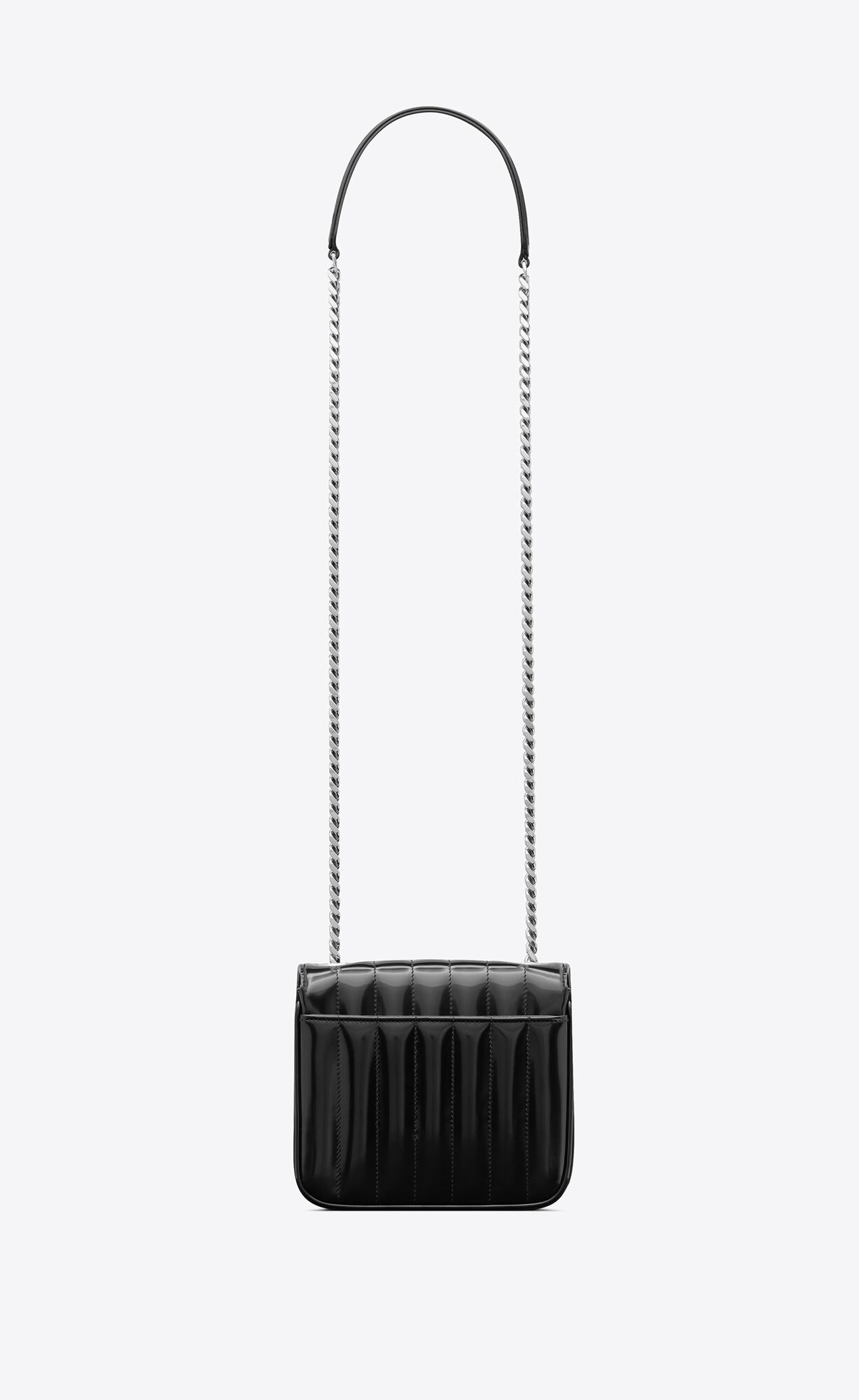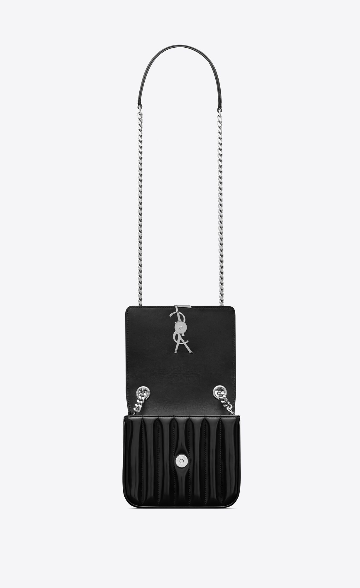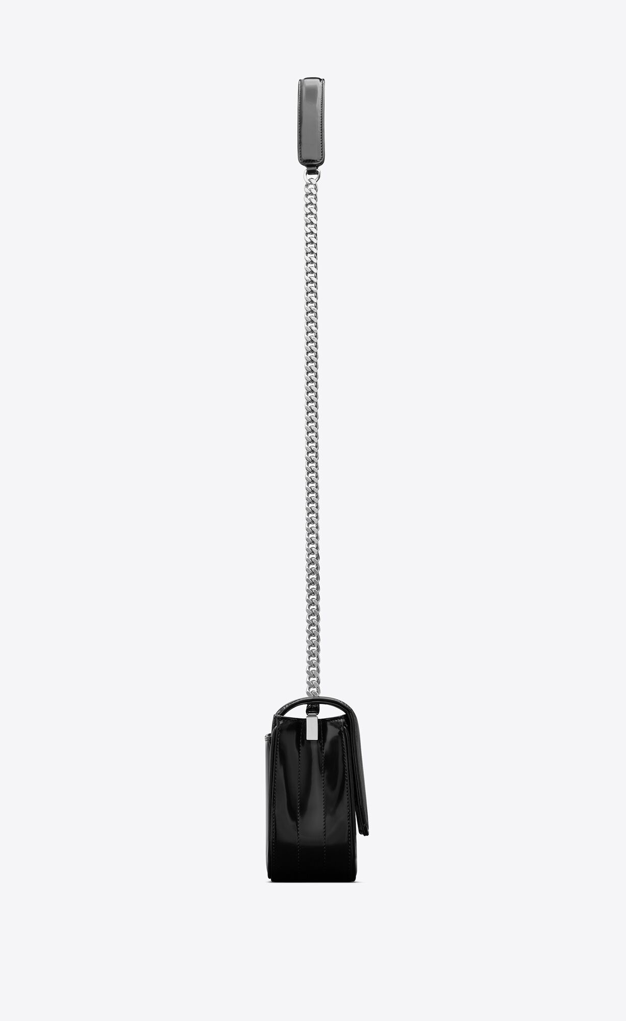 small flap bag decorated with the Cassandre and quilted overstitching, featuring a leather-and-chain shoulder strap.