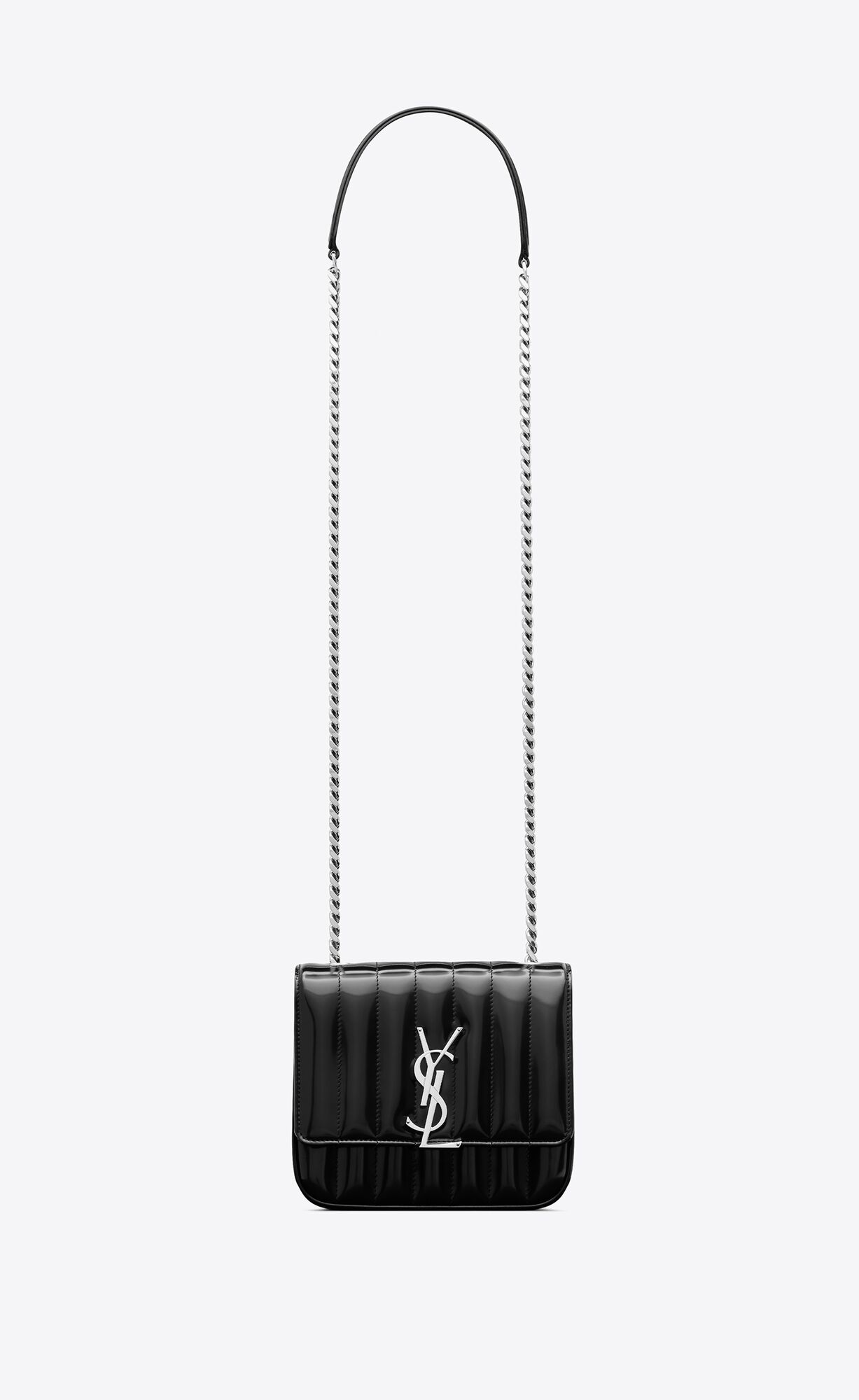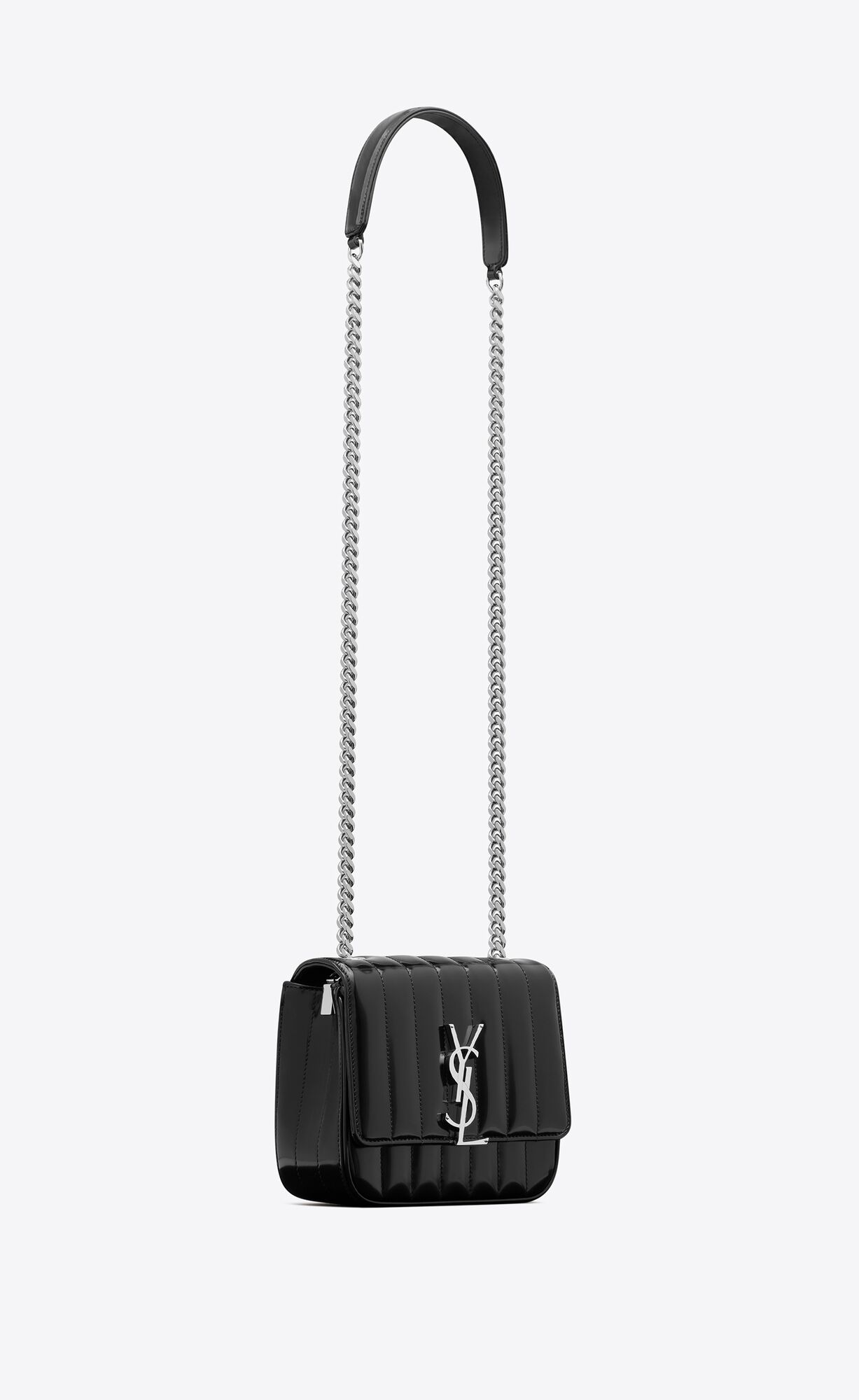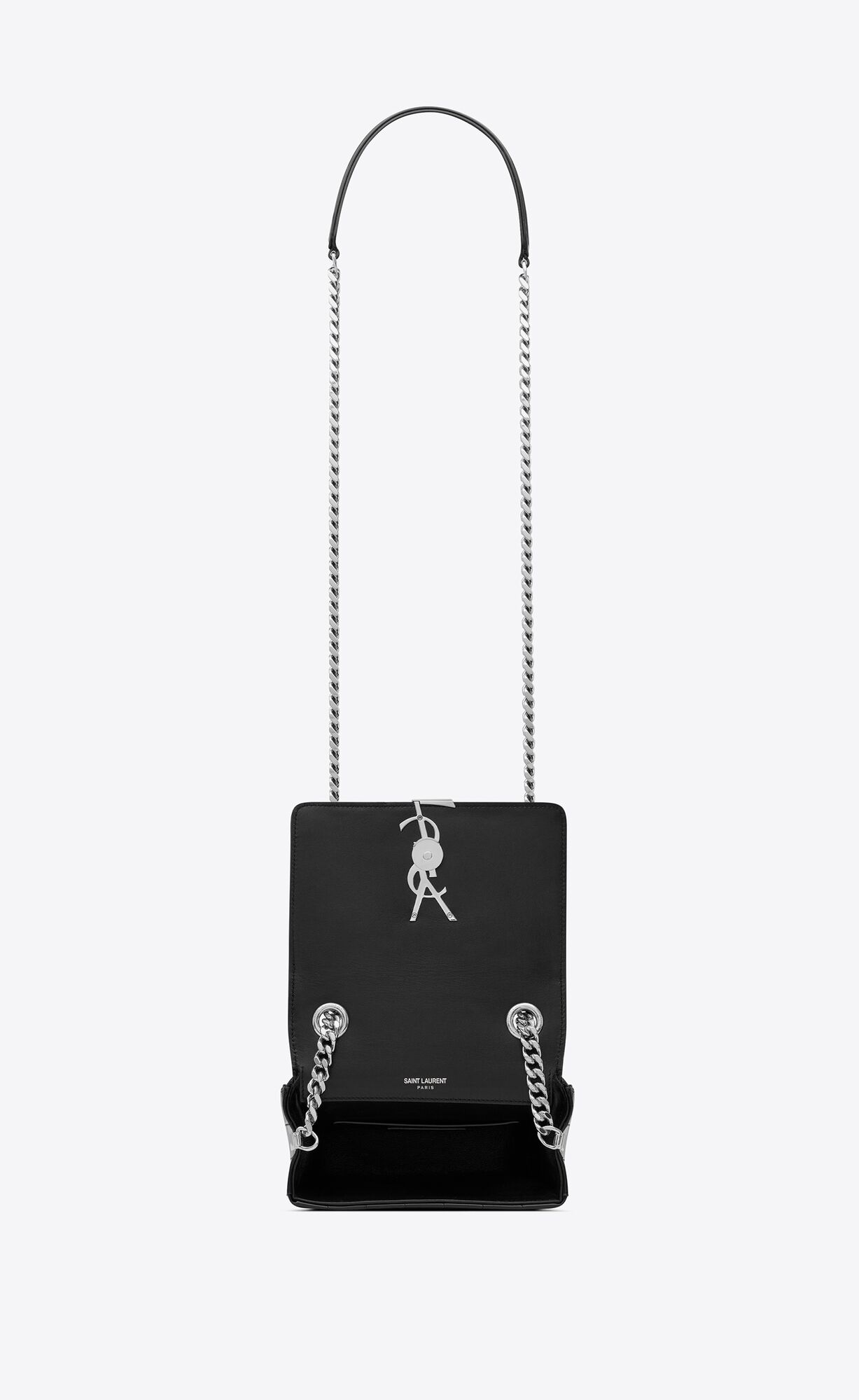 small flap bag decorated with the Cassandre and quilted overstitching, featuring a leather-and-chain shoulder strap.
